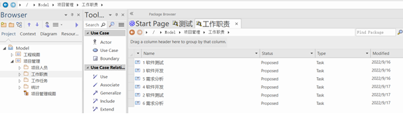 如下是导入到 EA 的《工作职责 .csv 》元素列表视图: