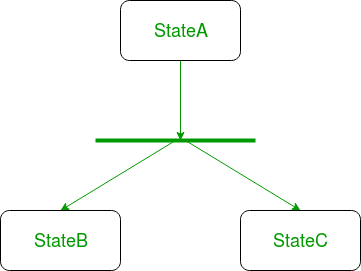 叉– 我们使用圆角实心矩形条来表示 Fork 符号,其中包含来自父状态的传入箭头和朝向新创建状态的传出箭头。我们使用 fork 表示法来表示拆分为两个或多个并发状态的状态。