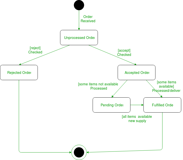 注意– 在这里,我们也可以将已履行订单和拒绝订单分别视为最终状态。