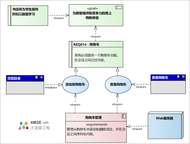 此图上创建的一个需求示例,使用的是需求元素和需求关系包括:聚合、跟踪。