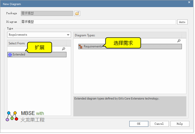 在 EA 的 “ 需求 ” 工具箱中,还提供了扩展需求,他包括一些需求元素: