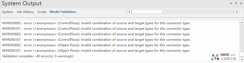 4.运行完成后,在 SystemOutput 面板的 Model Validation 中查看检查结果