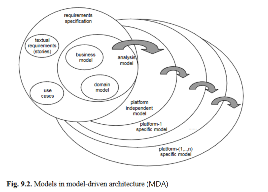 CIM从系统用户的视角包含系统相关信息,是一种分析模型,通常包含领域模型、业务模型和需求(图9.1)[30]。描述性模型与规定性模型之间的鸿沟在CIM中尤为明显:CIM的领域模型可选择作为领域本体论(图9.8中的CIM-DO);捕捉应在所有软件产品中遵循的企业业务规则的业务模型,也可被视为领域本体论(即企业规则的领域本体论,图9.8中的CIM-BO)。然而,CIM中涉及需求的部分无法通过本体论涵盖,因为这些需求规定了待构建系统的要求,因此这部分规范被归为图9.8中的CIM-RM(规范模型)。这一差异也是为何仅CIM的规范部分(CIM-RM)需要元模型的原因:CIM-DO或CIM-BO的概念描述现有事物,可能继承自语言或概念本体论层级的概念;而CIM-RM中的概念是CIM元模型的实例,因为它们规范了系统的功能部分。