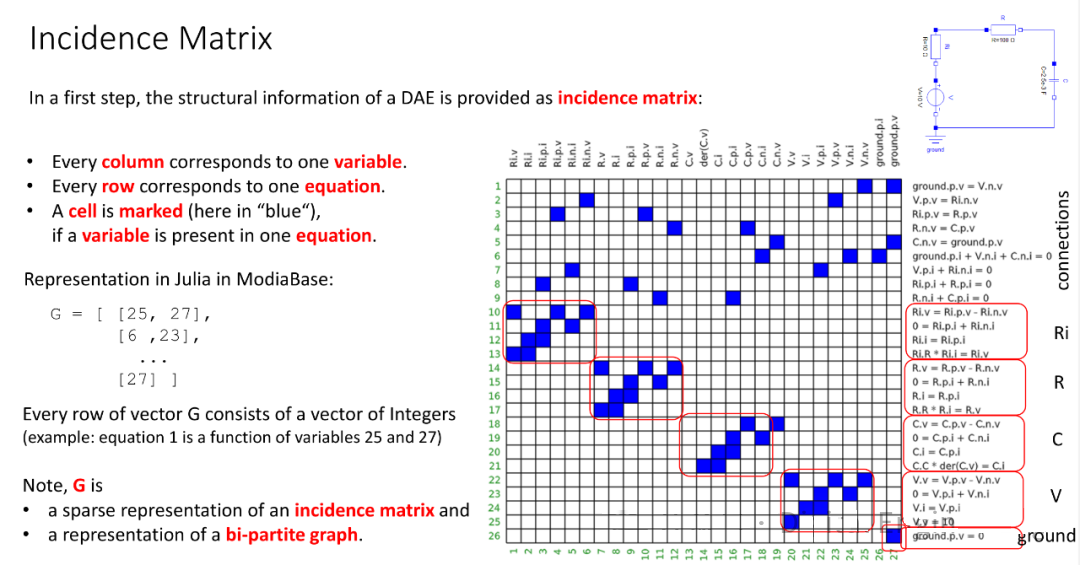 这里用到的 紧凑高效的分配算法 ,出自论文:Pantelides C.C. 1988 年发表的《微分代数系统的一致初始化》(发表于 SIAM 科学与统计计算期刊)。这个算法是处理 “微分代数系统(如电路,同时包含微分方程和代数约束)” 的核心工具之一,用于解决 “变量与约束方程的匹配 / 分配” 问题。