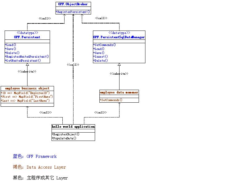 world application中也不需要调用类似OPF解决方案(请参考上文的OPF类图)中的RegisterObject方法,所有这一切(甚至包括数据库连接信息),系统都已了如指掌! (2)