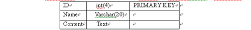 content text, Primary key id); |