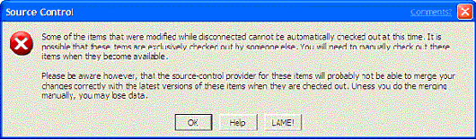 脱机工作时,有许多需要注意的问题。最主要的问题是需要取消警告对话框,以便在脱机工作时成功地签出文件。该问题以及其他问题在前面已经叙述过。