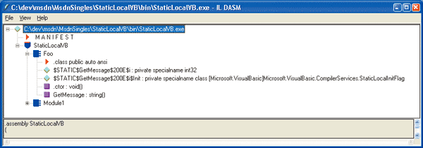 因为 CLR 不支持静态局部变量,所以 Visual Basic 编译器必须执行一些额外的工作才能使该程序成功。该编译器会使用两个特殊名称向该类添加两个变量,如图