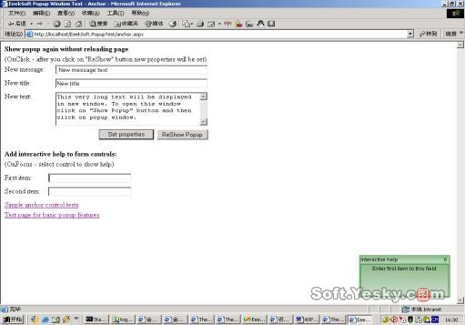 DEMO例子里演示了如何使用popupanchor控件,如下图,当点击第一个文本框时,弹出窗口,提示要输入文字;当输入完第一个文本框的内容时,将鼠标移动到第二个文本框时,又会弹出第二个窗口: