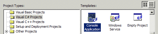 在左侧选择 Visual C#Projects,然后在右侧选择