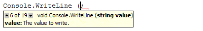 System.Console 类的 WriteLine() 函数打印传递给它的字符串,其后紧跟一行新的字符。此函数可以接受许多其他数据类型(包括整型和浮点型)的参数。