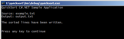 Console.WriteLine ("This example demonstrates the QuickSort algorithm by reading an input file,");