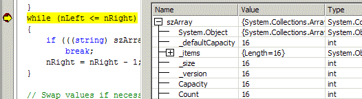 while (nLeft <= nRight && ((string) szArray[nLeft]).CompareTo (szPivot) <= 0)