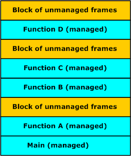 (CLR) 中以执行 JIT 编译、处理异常情况、进行垃圾收集等。因此,在进行堆栈遍历时,您可能会遇到混合模式堆栈,即有些帧是托管函数,有些则是非托管函数。