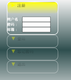 主要是四个动作,第一设置具体内容的显示和隐藏,第二设置黄色小箭头的方向,第三是设置矩形框的大小,最后设置标题的黄色背景的显示和隐藏。