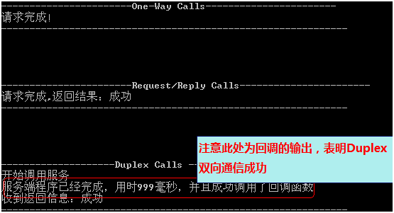Console.WriteLine("--------------------Duplex Calls ---------------------------");