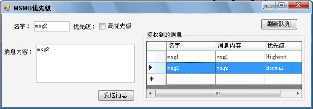 下面来看看一个在消息传输中使用优先级的示例程序,通过示例程序会学习得更明白。示例程序界面:
