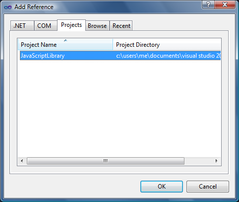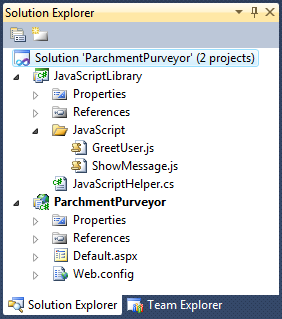 现在我们有了可用的类,接下在让我们在Default.aspx页面中试用它。首先在站点ParchmentPurveyor中添加对JavaScriptLibrary的引用: