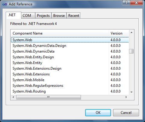 在确定JS文件嵌入DLL后,你需要使它们能够被Web用户访问。为此,需要为项目JavaScriptLibrary添加System.Web的引用: