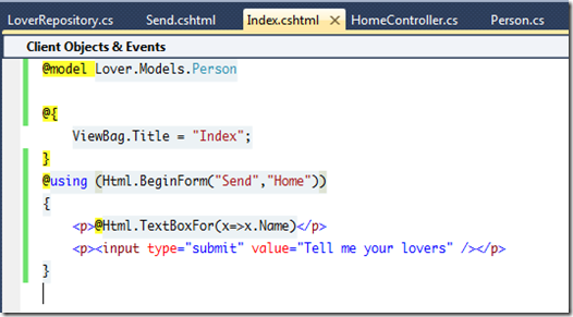 第二我们在类内部new了一个对象,假如我们这次是从数据库中得到Lovers,下次想从文件或者Web Service里去数据时,我们必须修改Controller里的代码。