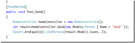 我们可以看到如果我们想测试HomeController里Send的这个Action,如果LoverRepository没有开发完或者出错,我们将无法测试。