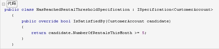下面我们就来定义个具体的业务规则:HasReachedRentalThresholdSpecification