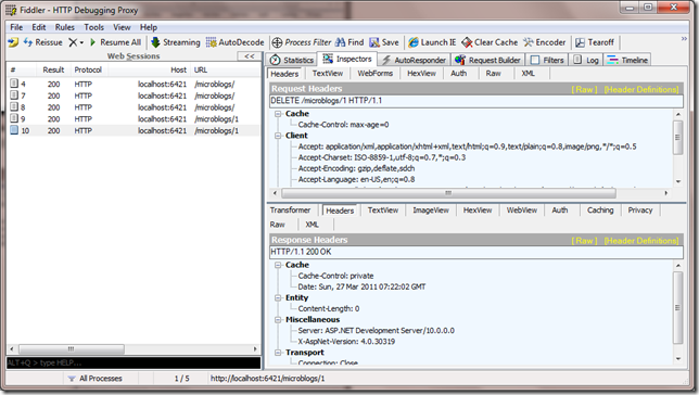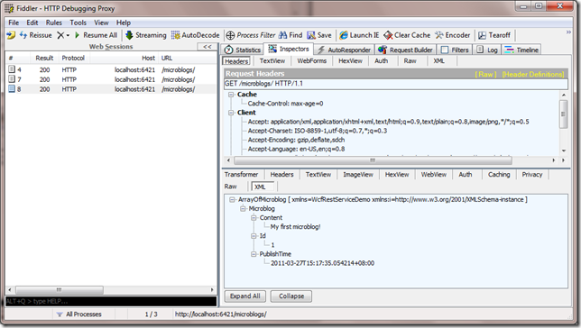 不过现在的RESTful服务还只能读取资源,WebGet只支持GET方法,要支持PUT, POST和DELETE,需要使用WebInvoke
