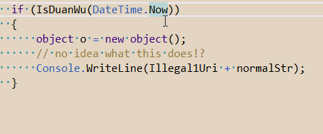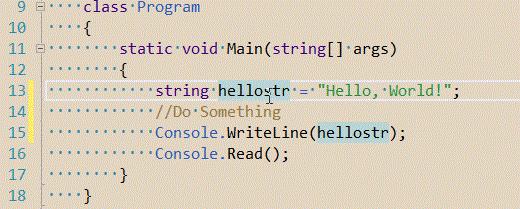 + Shift +F10。当我们用到一些类型在我们工程引用的程序集里但是没有在当前当前文件引用的命名空间内时,或者我们写了一个不存在的函数时,那行代码会有错误提示,并且在左下角有一个小符号。如图: 。我们鼠标移到符号附近会出现一些帮助,可以自动帮助我们添加引用或者生成函数。这个快捷键就是在不移动鼠标的情况下让其出现这个提示。