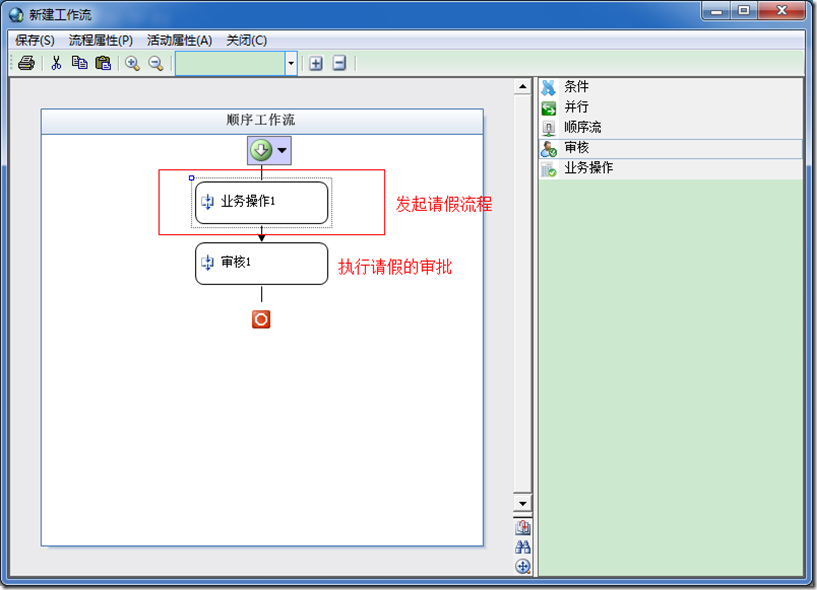 7、确认后,来设计请假的具体工作流程及审批流程。