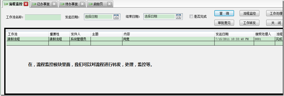 通过上面的步骤,我们就完成界面的开发了,下面我们就来看看如何走工作流平台吧: