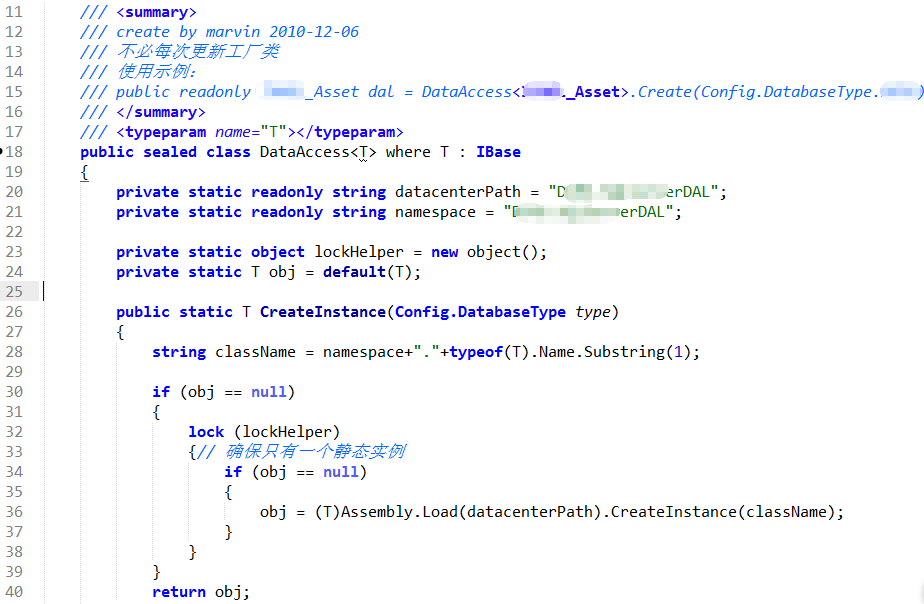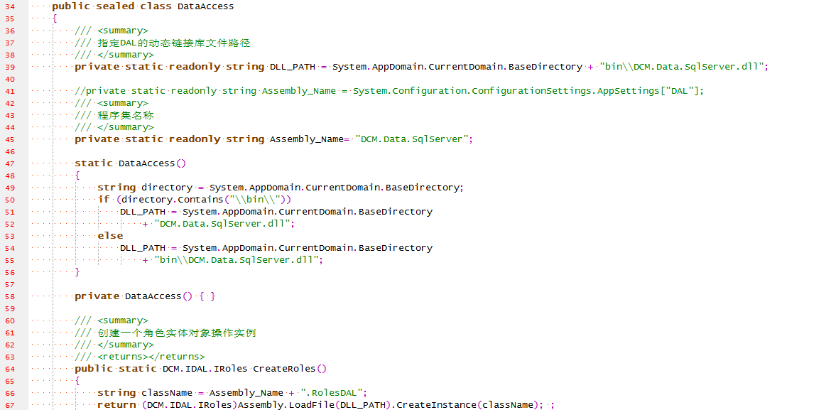 看到没有,就是当年最最流行的三层架构的产物,对于刚出茅庐的毛头小子来说,这是多么专业的文件头注释,还有反射也就算了,这构造函数还能静态的,还能私有的?那时刚接触这么高大上的代码的我,瞬间给跪了!