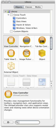 Touch控件。如果你运行Leopard【译者注:原文这里为Snow Leopard,实际是错误的。】,那么你的控件库窗口如下所示: