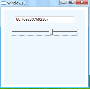接上一节的小例子,拖动Slider手柄时,TextBox就会显示Slider的当前值(实际上这一块涉及到一个Double到String类型的转换,暂且忽略不计);如果我们在TextBox里面输入一个恰当的值按Tab键、让焦点离开TextBox,则Slider手柄就会跳转至相应的值那里。如下图所示: