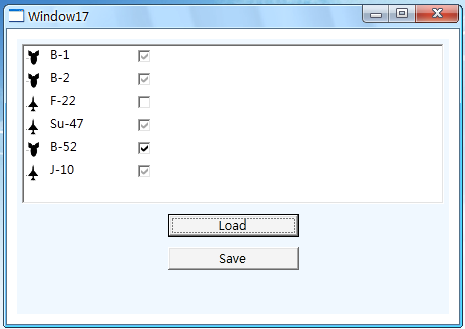 IsChecked="{Binding Path=state,Converter={StaticResource snb}}" IsThreeState="True"/> </StackPanel> </DataTemplate> </ListBox.ItemTemplate> </ListBox> <Button Content="Load" Height="23" Name="button1" Width="131" Margin="5" Click="button1_Click" /> <Button Content="Save" Height="23" Name="button2" Width="131" Margin="5" Click="button2_Click" /> </StackPanel> </Window> |