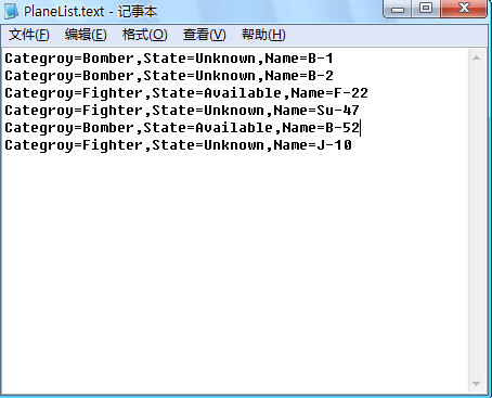 单击Save后打开D:\\PlaneList.text数据如下图: