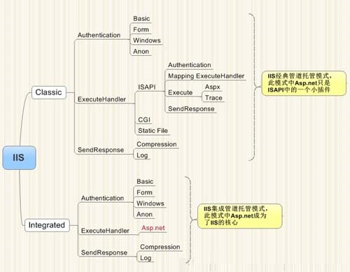 如下图为IIS两种托管模式的运行机制: