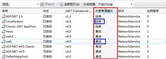 IIS7.0提供了两种管道的托管模式,它们分别是:经典管道模式和集成管道模式。经典管道模式是IIS7.0以前的请求模式,这种模式扩展繁琐,运行效率也比较低下。IIS7.0发生了翻天覆地的变化,就连底层的代码库也是重新进行编写的,但是微软为了IIS的兼容性,仍然为用户保存了经典的托管模式。