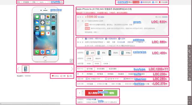 这个阶段给我最深刻的感觉是单品页后端模板很少维护(后端架构是最老的aspx版本)。大多数的改动都要用JavaScript去动态渲染。因为后端页面是一个生成器生成的。如果页面后端模板有改动那么就需要全量的生成一次,过程可能需要几个小时。