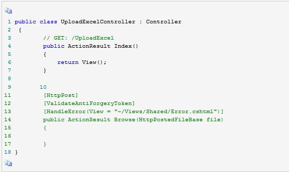 1 public class UploadExcelController : Controller