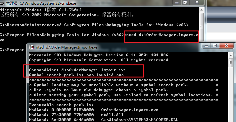 进入到ntsd调试器中,然后使用 .dump/mf d: \ order