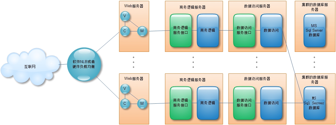 大型asp.net应用要考虑如何服务众多的访问者,同时还要保证每个访问者都获得高质量的服务。需要面对不同语言的用户;需要保证安全性;应用系统的伸缩性也是很强的,当服务器集群有点不足以担负压力时,可以向服务器集群中加入更多的服务器来增加整个应用系统的服务能力。服务器的可用性也会要求很高,一年的下线时间是很少的。服务器的灾难备份也是很好的,即使现在的机房遭受毁灭性打击,也有灾难备份可以恢复服务。服务器上跑的asp.net应用是可扩展的,具有很好的可扩展性,同时具有良好的可维护性。本系列文章将谈谈大型asp.net应用系统架构的诸多方面。本篇将谈到架构的选择。