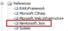 一个自定义的序列化器主要是继承了MediaTypeFormatter的基类。我们编写的这个JSON序列化类为JsonNetFormatter,在使用前要确认你的应用工程中已经引用了Json.NET的类库,如下图: