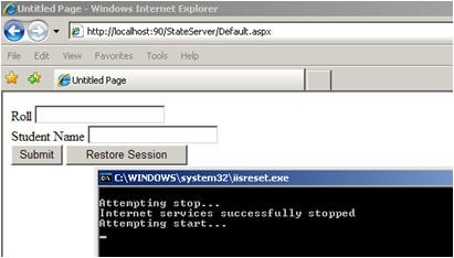 我们使用StateServer或者SQLServer模式对这种情况进行处理,之前解释过,这两种模式不依赖于工作进程,在之前的例子里也说过当IIS重启你依然能访问到Session数据。
