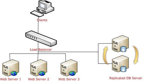 在几个月前,我部署了一个实际环境:这个环境要处理百万级的用户访问以及超过10个域控制器,通过负载均衡搭载了超过10台服务器和服务数据库。例如交易服务器、LCS服务器。最大的挑战来自于跨多个服务器的Session管理。下图对这个生产环境展示了一个简单的图形: