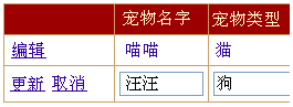 PetName 和 PetType 字段的值。Edit(编辑)链接将更改为
