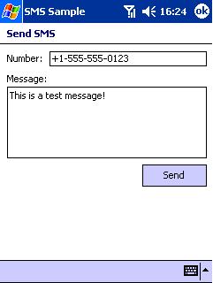 图1.SMS例程 在这个窗体中,你能输入一个国际移动电话号码和一条文本消息。点击Send按钮时,消息就发送了--就这么简单。 编码过程 下面是发送SMS消息核心代码。首先需要定义一些微软Windows API: l 一个API打开SMS消息组件 l 一个API发送SMS消息 l 一个API关闭SMS消息组件 Public Declare Function SmsOpen Lib "SMS" (ByVal ptsMessageProtocol Public Declare Function SmsSendMessage Lib "SMS" (ByVal smshHandle Public Declare Function SmsClose Lib "SMS" (ByVal smshHandle