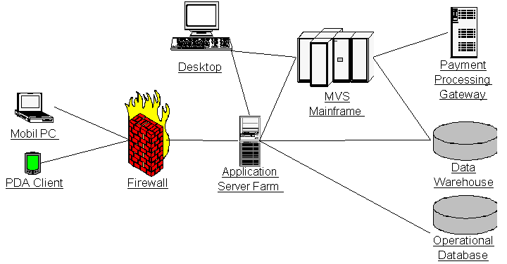 在图1中,你可以看到结点都有名称,例如client、Application Server、Database Server、和Mainframe。 所有的这些术语都需要即刻为组织内的开发人员所认可,因为这些条款都是他们日常使用的。 保持它的简单性。
