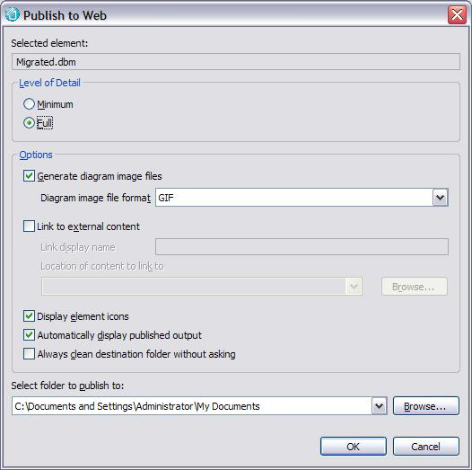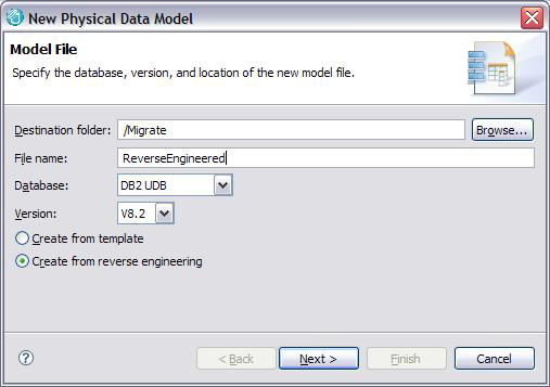 Destination folder:Rational Data Architect 将数据模型文件实际保存在该位置