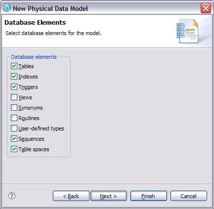 如图 36 所示,Rational Data Architect 在创建数据模型之前,会要求提供一些选项。选择 Next,Rational Data Architect 开始这个过程。