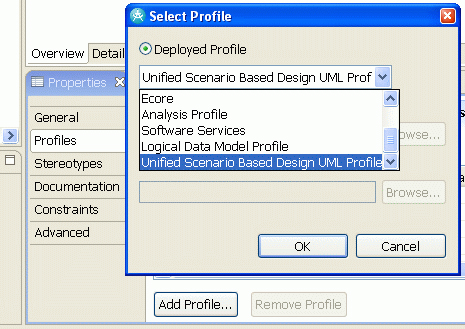 根据 USBD (基于统一场景的设计)概念补足业务知识 至此,您已经将相关的业务处理过程的知识导入到 Rational Software Architect 之中,并且您希望通过那些 WebSphere Business Modeler 不打算捕获的概念来增强这些知识。为了能够在我们的模型中使用 USBD (基于统一场景的设计)模板,您首先需要做的就是将用于 USBD 的 UML 2.0 规范添加到这个模型之中。